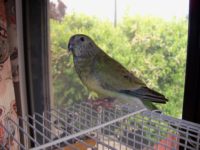 She is green all over from light pastel green on the belly to dark leaf green on her back, shoulders are tipped bright green.