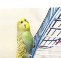 He is yellow with some green and blue feathers. His cere is a purple/blue color. He can say “What’s up Twinkle bird”. “What you doing”, “Tweety bird”, Birddy, birdy, birdy” and can make R2D2 noises.