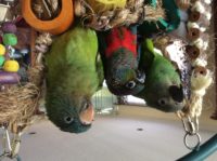 Lost Crimson Bellied Conure on 6/23/17 in South San Francisco, California. Small green parrot with bright red belly and black leg band. Will supply band information and documentation. Tame but shy. Pellet diet. Reward if found and returned. Please call (415)713-9398 any time. Thank you!