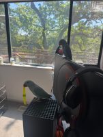 My birds are a beautiful light shade of Blue (Hence the name Bluey) and a darker shade almost purple if you will, That is Manny or “Manolo” what my kids call him or her, we are still unsure if they are girls or boys. Anyway, I was bringing the cage inside today and they somehow got out. I tried catching them but it was no use. They flew around two or three times but didnt hear them or see them after that, I walked around and drove around whistling calling out to them and playing indian ringneck sounds but was not able to fins them.