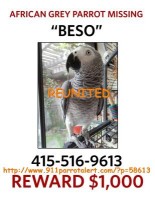 LOST USA CA Walnut Creek, Congo African Grey ‘Beso’ Dec 22-14