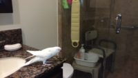 She is scared and response to my voice when I say “Bird Bird”, or “Jew-jeew” or “CooCoo” or “booBoo” or “I love you” and her response are a soft gentle squeek with affection and you can see it in her eyes.