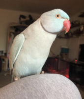 Hi, my male Indian Ringneck parrot, BLU, got out of my house and flew away.. I live in the ROSELAND area of Santa Rosa he is 5 years old and is a light vibrant blue color with a bright orange beak and a black ring around his neck and a long tail, he also has been plucking his tummy feathers (seen in last picture) so he can be easily distinguishable, he looks a little scruffy from the plucking and he is flighted, not sure if he will say any of the phrases he knows but he knows how to say “step up, come here, give me a kiss, he makes a kissy noise, also says that’s a good boy”