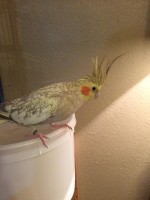 Ace have a yellow and grey barred tail, tall yellow crest, pearling all over her body and wings. Very friendly.