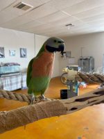Opal is approx. 2 yrs old. She is tame, but afraid of hands. She may bite if picked up using hands. She is flighted, but doesn’t fly well.