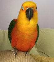 Axel is a 3 year old sun conure. He has a band on his right leg. Please help us find him as we miss him!!