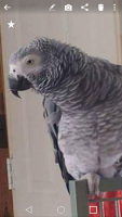 African Grey Congo Parrot named Lulu – she is all grey with red under the wings and tail, she is anxious and does not go to children. She loves peanuts and cheese nips.