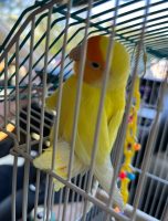 Angie flew away yesterday at around 2:30. She was seen in the tall trees for nearly 3 hours and seemed as if she was going to come back down as we talked to her, but all of a sudden she stopped calling out to us. If you whistle at her in a high to low to high again pitch, she will respond in the same whistle. She makes lots of funny sounds and if you press your finger or anything else against her beak, she will make a kissing sound. She does bite, especially those she is unfamiliar with. She does not have her wings clipped, a microchip, or any sort of tracking. Her head is a very vibrant orange which may make her more identifiable.