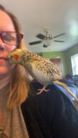 Grey & yellow male cockatiel with bright orange cheeks. Fully flighted, not banded.