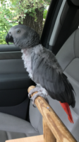 Dee Dee has partially removed her feathers on her front and back of her body – down feathers present. Wings and tail intact.