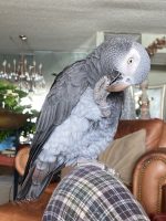 20+ year old African Grey Timneh. One of his pupils is not perfectly round due to an injury. He likes to be held but does not like to be touched. Our family is extremely upset with this and any help will be greatly appreciated and rewarded.