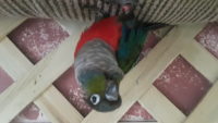 Very inexperienced flyer. Does not respond to his name, but will respond to whistles. Red band around leg. DNA papers available to prove ownership.