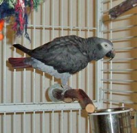Barney will say all kinds of phrases, hi bird, hi barney, coughs, etc. He might step up on your hand but he was abused in the past so he will step up on a stick/perch. He knows the command of step up and go in, which means go in the cage. He prefers men over women. He has been gone along time but I still am looking for him. I hope someone has found him and didn’t think of looking too much and still has him. He’s been gone too long and I miss him.