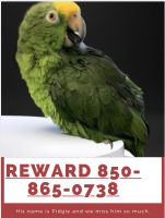 Pidgie is large, and colored green and yellow. Wings not clipped.