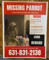 $500 REWARD. African Grey. Gray Bird with Red Tail. Last seen in Portico Community. Please call or text with any info: 631-831-2138. THANK YOU!