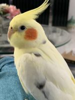 Tintin is 3 year old cockatiel. He has black spots on his neck and wing. He loves to whistle and sing. He sings September by earth, wind and fire.