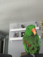 Male Eclectus – Green with orange beak – Longwood – Mandarin Estates off Longpond/ Wekiva/Alaqua Lakes area – Responds to the name Solomon, very talkative but shy around strangers. Not a strong flier. Last seen around 8pm July 12 at the intersection of Crowley Cir E and Crowley Cir W up in a tree. Got spooked and flew off down Crowley Circle W. Unable to spot in the dark and cannot hear him respond. Will be very scared and has never been outside! Reward!!!! Please call or text 407-719-9122 if seen or he manages to land on or near you, or if spotted.