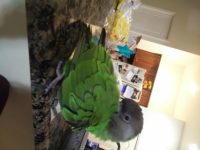 Senabelle is very loud and she loves to whistle. She is a very vibrant green color so she should stand out.