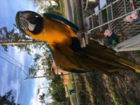 So I just Rehomed Blue three days ago, his owners passed away. He is about 10 years old and he’s partially blind in his right eye. He was staying with family members, a couple and they were deaf. They had no knowledge about the bird and just wanted him to go to a good home. He was very calm his 3 days with me didn’t scream allot. He lets me pet his head but is still unsure. I have a mini macaw and she doesn’t fly. I had him outside for two days he didn’t fly he just ate and played in the sun. He took a bath.