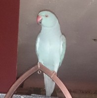 INDIAN RINGNECK BLUE WITH A LITTLE DEFECT IN ONE OF HIS/HER TOES. TRAY TO IMITATE SOUNDS BUT DO NOT TALK AS OF YET. THE DISTINCTIVE RIG IN THE NECK HAVE NOT SHOW OF YET. IT IS ONLY YEAR OLD. IT IS NOT UNFRIENDLY BUT ONLY ONE PERSON IN THE FAMILY TOUCH HIM/HER AND HAND FEED. WINGS AND NAILS ARE UNCUT.