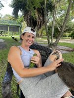 Young monk parrot. Name is Duckie. Very friendly. Likes to walk in the floor/ likes dogs. A hawk attacked my outdoor aviary – he was dropped once by hawk and picked up by a second before I could intervene. It happened 7am Friday morning October 7th. My bird was molting slightly on top of head. Very friendly as I hand fed since baby. Likes to eat meal worms…