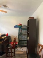Clifford is a friendly 4 year old Macaw. He was rescued as a baby and was given a second chance at life, we were lucky to be the ones to give that. After being in our family since then he flew outside for the first time ever yesterday after getting spooked in the house when our back door was open. He shouldn’t have gotten far, as he spent a long time in our tree. But as cautiously as we tried getting him, he escaped the tree as well. He is easily spooked so please if you see him contact us first so we can come to you!