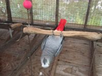 Congalist flew away while we were bringing our 2 birds into the house in preparation for hurricane Irma. She is a very sweet bird and as all African Greys she imitates everything. She imitates crows, blue jays, my cat, my dog and whitles to “The Addams Family” theme song for the show. If you begin whistling this music, she will repeat. My eclectus misses her badly and is now imitating her. She is a fairly yound bird as we purchased her in late 2004 when she was approximately 1.5 yrs. old. She also imitates our late dwarf macaw. She is a bit large for her species but I believe maybe the females are as our late males African grey was not this large or light in the color of grey.