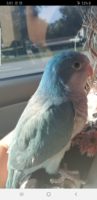 Her name is Lola she is a blue quaker parrot a mixed bluish green color