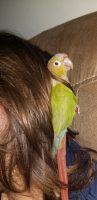 Luna also responds to hi bird and hi baby. Very sweet and very comfortable being held. Spends most day time out and about in the house on her perch. She got scared are a door knock and flew out to a tree in the front yard later to be scared off by squirrels in the tree. she has a band.