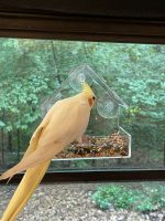Taco is extremely tame. She will possibly try to land on someone or may come when called. She has a typical cockatiel whistle but will also do a fox call whistle. She is going to be terrified. She is fully feathered so we are