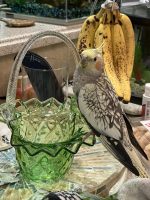 Bonita loves sitting on your head or shoulder. She flew off my head on my back deck on Sunday March 3, 2024 in West Cobb County in Powder Springs, GA. She loves to whistle her flock call and she will step up on your finger. She loves seeds but also eats greens and pellet food. She loves sugar snap peas. Please call us if you spot her. Please try to secure her and we will come and get her.