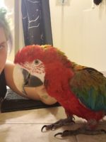 Gwydion is a jubilee macaw, she flew off in the highlands neighborhood in valdosta ga. She looks like a greenwing but has much more green on her back and up her neck. She is not friendly towards others but may be enticed with food.