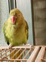 Meeko is a greenish Indian Ringneck (IRN). She is a shy female who scares easily- please do not try to catch her for risk of causing her to fly further— call me ASAP- she is fully flighted and flew out the door Aug 8 22. I am listing her species as “I don’t know” because I’m worried people won’t recognize her species if they don’t know parrots. She eats Zupreem Fruit blend in case that matters.
