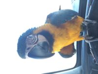 My baby is 8 months old he is very attached to me has a few feathers broken on his tail and some on his weight wing he has signs of black grease on his tail Please if you see or find him please let me know