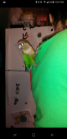 Shy at first but if you give him food he’ll come to you. Loves to eat bird food, fruits, bread, chips, anything really. Loves to play on peoples’ heads.