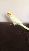His wings are now grown out. He is very friendly doesn’t bite. Whistles Addams family and wolf whistles. He is young. His band is dark green and starts with 07 .