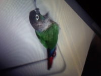 We don’t know to gender of our bird. Qu says “Jessie May” and “shut up”. Qu has a orange band on his right ankle.