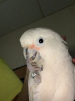 He does not talk well. When he screams it sounds like he is saying Devin. Which is our oldest daughters name. He is 7.5 years old. He likes to chew on his leg band when he is nervous.