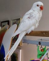 She is hand shy, & has a loud voice during certain times of the day. She also does not like low ground/floor, she will fly once she notices she is close or on the ground floor. Also nervous around men she doesn’t know.