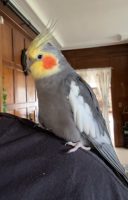 He is a gray cockatiel with white on his wings, a yellow head, and orange cheeks. He was missing since 10 am on 09/09/2024. Last seen by us near our home on Saltonstall Road, Haverhill, MA, 01830. My number is +1 (617) 880-9059.