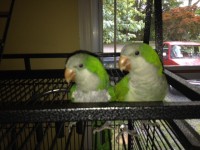 Freaky is the one on right in photo. Can talk. Loves to sing song from Andy Griffith Show. Silver leg band.