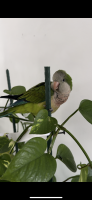 She is super friendly. She is a green bird with a bit of blue on her wings, and some grey on her head and chest area, she has lipstick stains on her chest but it’s possible that has been washed off since it’s been a couple days, she loves tomatoes. Her name is pistachio, but she answers to stinky and munchkin. If approached, you must approach her slowly and be gentle or she’ll be caught by surprise and fly away. She loves to talk, her most spoken words are hi, I love you, good morning, and watchu doing.