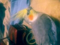 He loves mirrors, likes to whistle and chatter. Him and I always whistle back and forth to eachother like u would whistle at a pretty girl. He also whistles happy and you know it tune and the adams family theme song. He sometimes chirps loudly over and over especially when he is trying to get attention. He likes shiny things is always pecking at my earrings. He flies around house and perches anywhere there is a mirror or a window. When he is out of cage he will just come land on my head my back my shoulder at any given moment. He is very well trained as far as stepping up on your finger. We have 2 cats that with some hesitation at first have become acquinted to gilbert in fact sometimes he will even go land on cat or walk around right by them even hitting them in face with tail feathers. So basically he isnt scared of cats which isnt good being out in wild. He flys all over house and he always struggled with landing. He gets nervous and doesnt like to really land on things unless they are significantly higher than other objects. He had injured himself at pet store i guess he got his tail feathers stuck in cage overnight some how and I actually ended up having to help groom the injured feathers and remove and seperate some of the broken ones and they finally grew in. He also had wings clipped when we first got him so he hasnt been actually flying for very long maybe only a few months ago. He has never been outside before but he is always singing and talking to wild birds through window. He is more vocal in morning rather than night and he can have a little attitude especually when he is tired or been left alone or doesnt get attention for a while. He is mostly a light gray clor with some white spots on his wings and he has bright orange circles on his cheeks and a bright yellow mohawk.