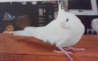 Jazzy is a very friendly all white cockatiel. Wings are not clipped and she doesn’t sing. She only chirps and whistles.
