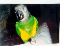 Pretty Baby is a small senegal parrot with a grey head, green wings and yellow great .., she is 25 years old with a leg band . I don’t know how to upload a picture 🙁