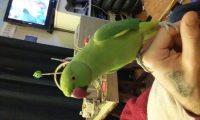 He is not all that tame is just over a year. Just starting to get red around his ring on his neck. Can speak, we are scared he is lost forever and will never return. Please help!