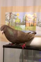 Last seen in Little Canada off of McMenomie and Sextant ave E. She is tan in color and has a lime green band on her right leg. She has a deep coo and is a girthy gal. She is also very bonded with her brother, Fern. She has some trust issues and is a nervous lady. She will only fly to me. She is an egg layer and loves to nest! She can fly well but doesn’t have much endurance. She loves other pigeons though, especially her brother and she is a bit of a push over with him. Also very food motivated! Contact: Ashley, 952-564-0571. Please call or text with any sightings as well.