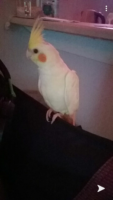 Banana is a 2year old male cockatiel who escaped through front door. He is apart of our family and is extremely loved he knows his name and can talk and sing. He know jingle bells which is his favorite to whistle , happy and you know it, Mickey mouse , can say what you doing pretty bird pretty girl and more. We are worried sick. He is a only pet and is also a ESA for my husbands ptsd. Please help reunite a veteran with his best friend