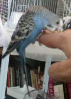 7 months old and shy; loves millet spray; cere is light blue; nails are dark towards the ends.