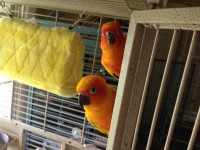 Polly knows her name and she will land on you, but doesn’t care to be handled. She loves almonds and listening to music.